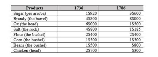 suggests that the lack of gold aroused an interest in agriculture and livestock, increasing the production of certain goods, such as beans, livestock, and chickens, and lowering their value, theharvest periods during the good years also forced the decline in prices.