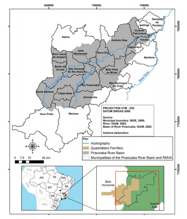 The study area selected for this research is in the river basin municipalities of Rio Piracicaba and Vale do Aço (RMVA), both shown on the map in Figure 1. This area partially coincides with theQuadrilátero Ferrífero region.