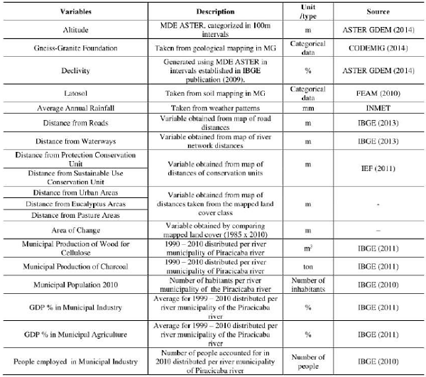 The territorial occupation of this area occurred during the Gold Cycle in the seventeenth-century colonial period, with the beginning of mining and agricultural activities, especially in the vast pasturesused for cattle farming. However, changes to the land cover intensified at the beginning of the twentieth century with the construction of highways and the advent of the steel, mining, paper, and cellulose industries. Withthe arrival of these industries, the grasslands became eucalyptus plantations and the native vegetation was cleared and used to fuel the steel industry’s furnaces. Another consequence was population growth and the unplannedexpansion of the urban areas. According to census data from the Brazilian Institute of Geography and Statistics (IBGE, 2010), the study area’s population rocketed from 613,662 to 926,861 inhabitants between 1980 and2010; an increase of 33.79% over 30 years.