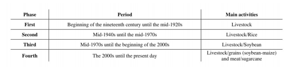 This therefore, stands as justification for dividing the productive structure of South Goiás into four phases. This periodization is expressed in Table 1.