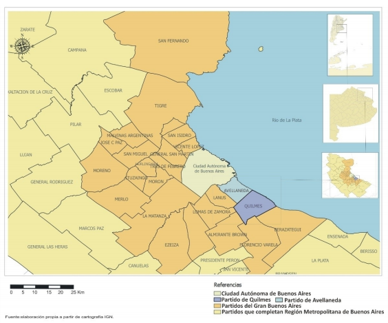 Los partidos de Avellaneda y Quilmes son dos distritos ubicados en el sector sudeste del Gran Buenos Aires . Pertenecen a la denominada primera y segunda corona, respectivamente. Ambos partidos se caracterizanpor una alta densidad demográfica, escases de suelo urbano, y la presencia de un amplio margen litoral, área de humedales que forman parte de los suelos bajos de reserva sobre la costa del Rio de La Plata (Figura1).