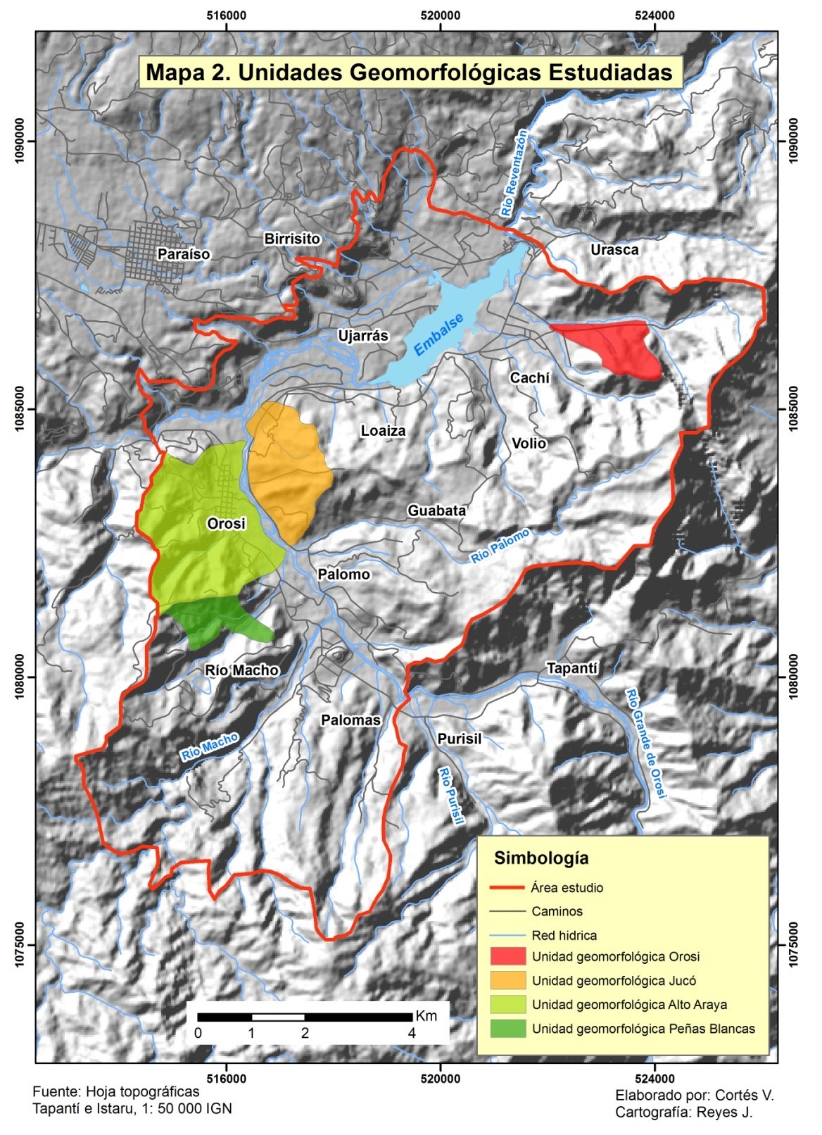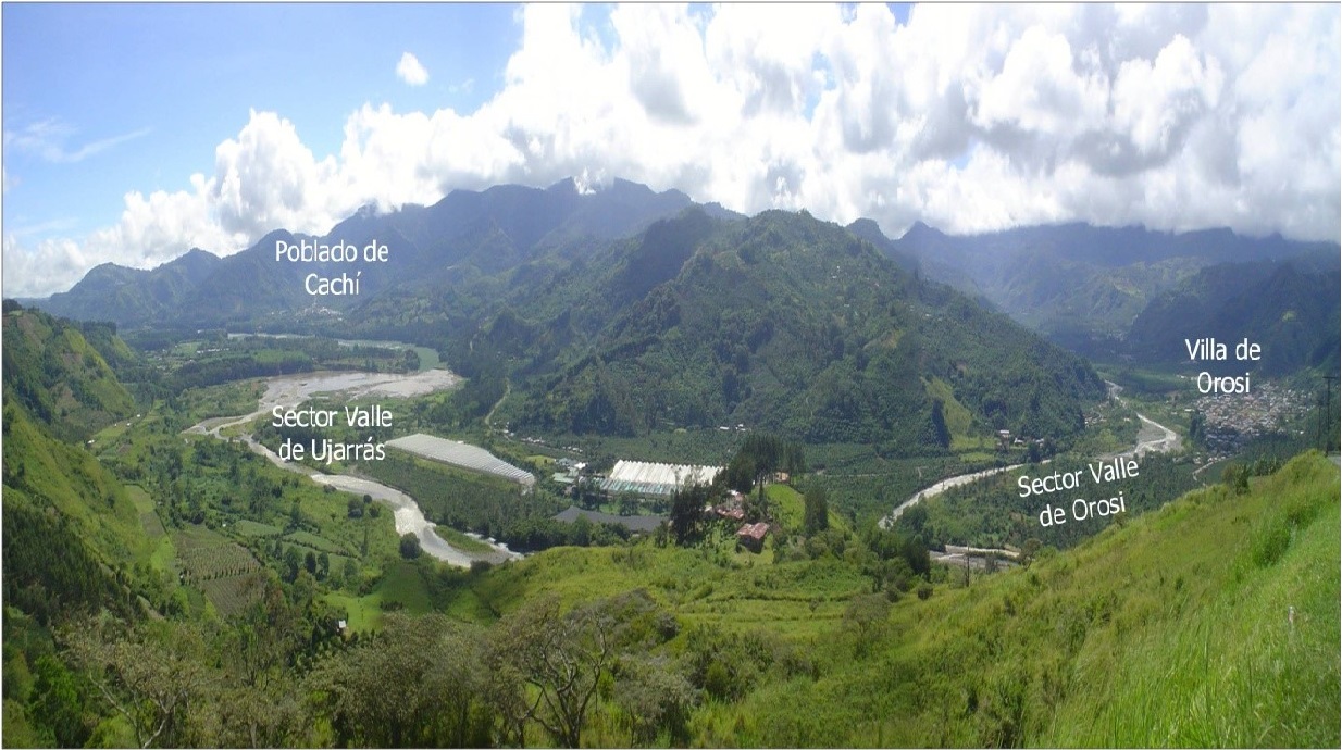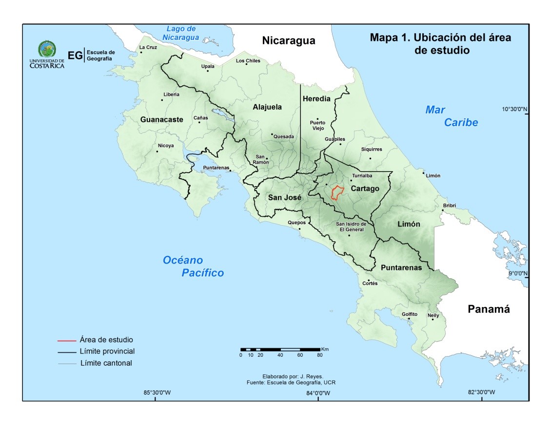 El valle de Orosi-Ujarrás (Fotografía 1), está en jurisdicción de los distritos de Orosí y Cachí,cantón de Paraíso el cual posee una superficie de 412 km2, perteneciente a la provincia de Cartago querepresenta el 6,1 % del territorio de Costa Rica. De acuerdo al INEC, 2017, en la provincia de Cartagohabitan 529817 habitantes o sea el 13 % de la población del país, de las que 61503 personas pueblan elcantón de Paraíso, es decir el 12 % de la población de la provincia, mientras que los distritos en donde seubica este estudio, Orosi y Cachí son habitados por 9849 y 5747 personas, de los cuales el 64 % y 54 %es población urbana, respectivamente. Mapa 1.