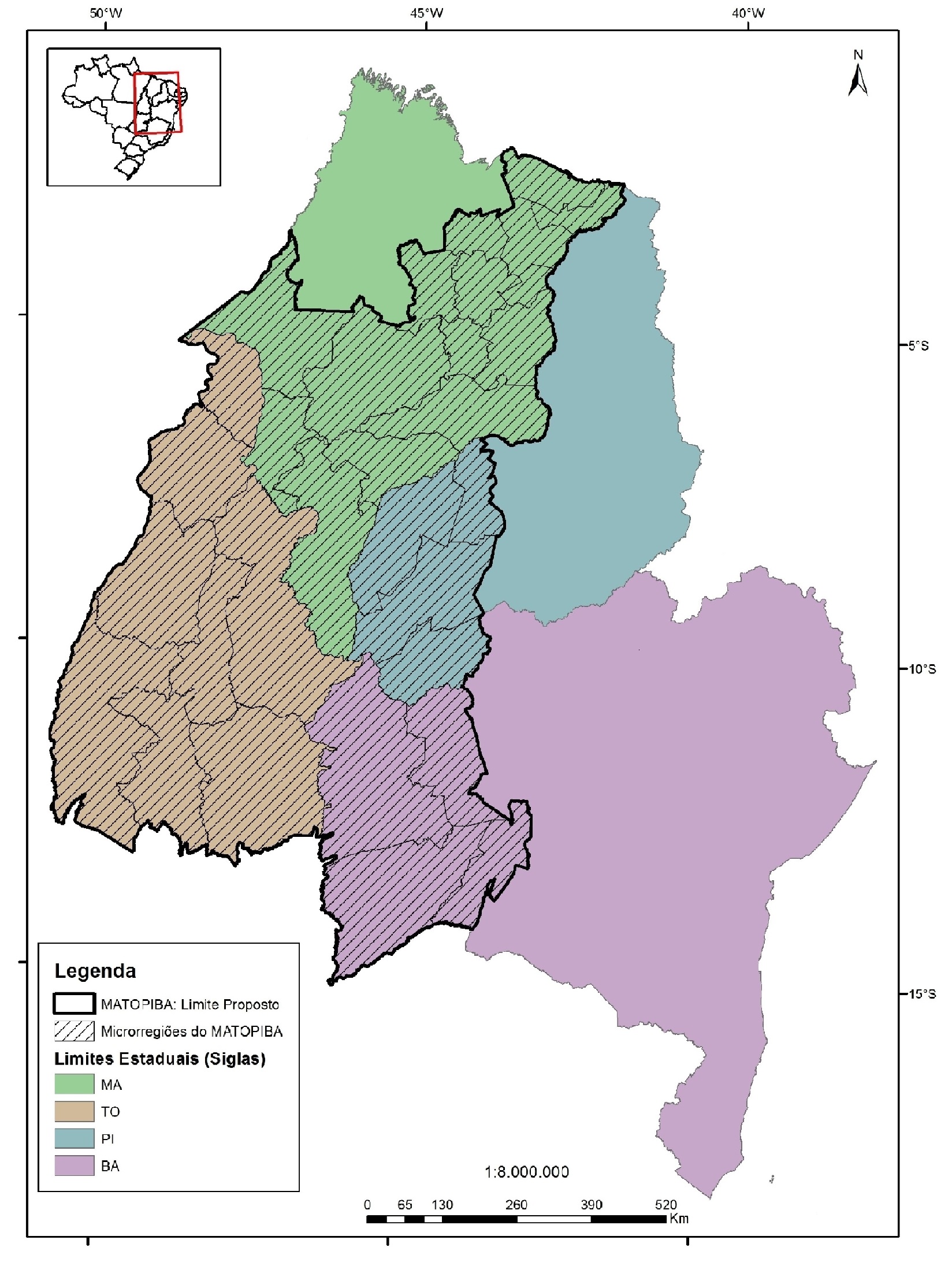 This acronym is formed by the initials of the states of Maranhão, Tocantins, Piauí, and Bahia, andits geography was delimited through an agreement between Embrapa and Incra (MIRANDA et al, 2014,p. 9)50.