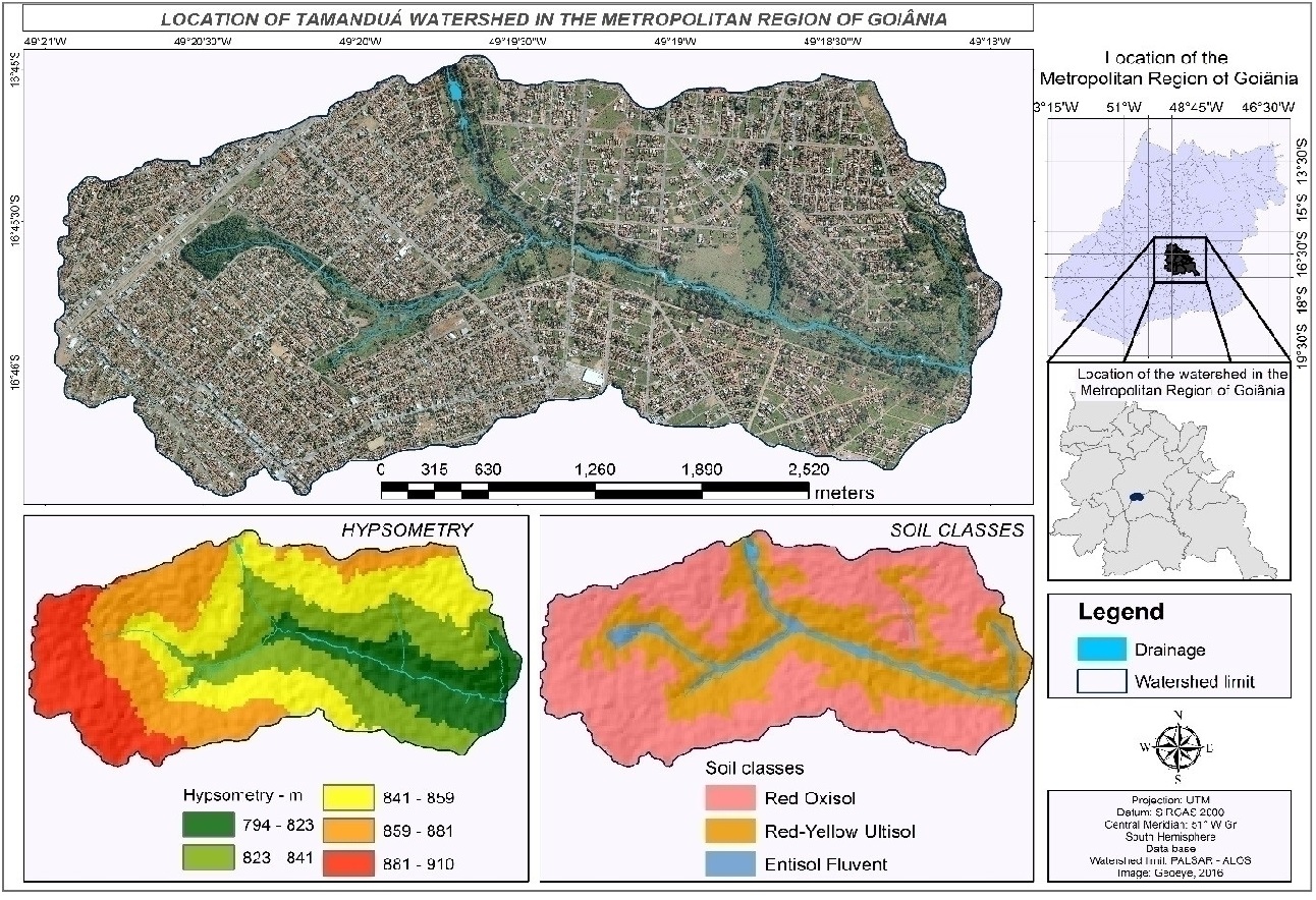 Hydrological processes, which result from the interaction of rain water with the properties of the terrain and soil, are the most prominent of these. On a daily basis, they create adverse situations that produce harmful effects. On the whole, these effects are caused by the occurrence of long-term, mainlyintense rains, combined with absent or in efficient infrastructures, such as drainage systems and poorly planned streets that, associated with compaction and water proofing, reduce the capacity of soils todevelop their hydrological functions. Inefficient infiltration and water retention processes in the subsurface are the most significant, as they influence the increase in surface runoff, alter the flows between the water table and drainage channels, causing overflow in rainy periods and consequently,impair the system’s continuity during droughts (SU et al., 2014; MOHAJERI et al., 2015).