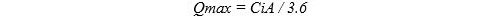 where Qmax = maximum runoff flow, estimated in m³/s; C = runoff coefficient or the ratiobetween the drained volume and the precipitated total, adimensional; i = average of the maximumintensities of precipitation, in mm/h, to estimate the maximum flow in the outlet in question, theduration of the rainfall event must be equal to or greater than the time necessary for the entire basin to contribute with runoff; A = watershed area, in km²; and 3.6 = conversion factor between units.
