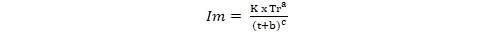 Where Im = average of the maximum precipitation intensities, in mm/h, K, a, b and c = specificparameters for the climatological station; T = time of return, in years for an extreme event; and t = timeof concentration of runoff which must be less than or equal to the duration of precipitation in the basinarea, in minutes. The present work considers a return time of 12 years, compatible with commercial areas and arterial traffic routes (PORTO et al., 2004). The duration times of the precipitation resulted from the time of concentration of the runoff, for the entire basin, estimated for the years 1992, 2005, and 2016. These were determined by the Cinematic Method, according to the SCS-USDA (1971) using thefollowing equation:
