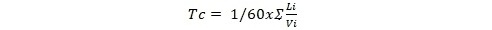 Where Tc = Time of concentration of runoff, in min; 1/60 transformation factor from seconds tominutes; Li = flow length in the considered segment, in m; and Vi = Runoff speed, in m/s.