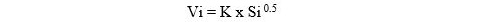 Where Vi = runoff speed, in m/s; K = coefficient, according to the Manning roughness coefficientn and hydraulic radius, adimensional; and Si = declivity, in m/m, raised to the exponent 0.5.