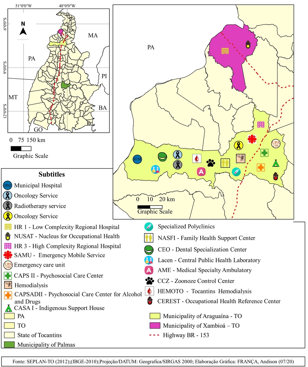 Medium-sized cities occupy a relevant place in the Brazilian urban political order, and, according to the IBGE (2017), both Araguaína and Marabá give their names to immediate and intermediate geographical regions. Furthermore, IBGE (2018) measurements of population displacements in search of low and medium complexity health services show that Tocantins and, particularly, Araguaína have different dynamics from those observed in the Northern region of Brazil.