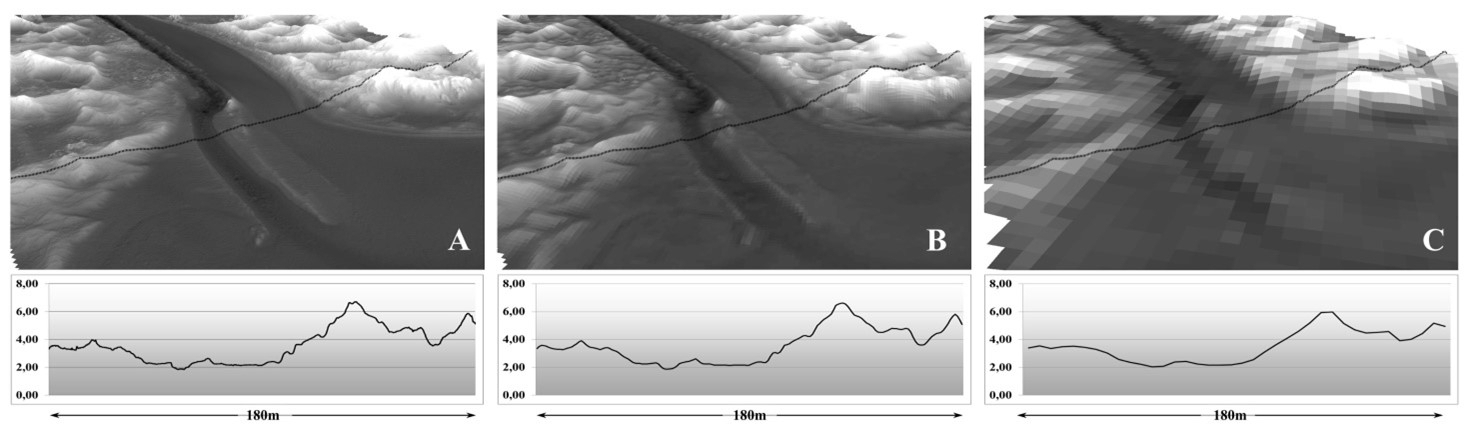 Paradoxically, the high resolution of the DEMs, provided by the modern tools of topo-graphic data acquisition and processing, bring new concerns with regard to the hydrological connectivity in the flood models. In the 1990s and up to the the mid-2000s, the topographical resolution of no more than 30 m was not a concern for the representation of the micro relief in geomorphometric models (POPPENGA & WORSTELL, 2016).