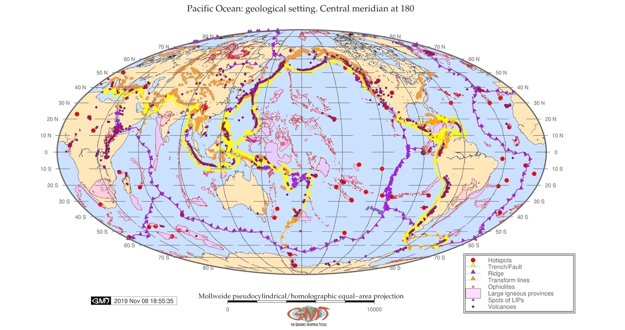 Keywords: GMT, Pacific Ocean, Tectonics, Mapping, Cartography, GIS, Data.
