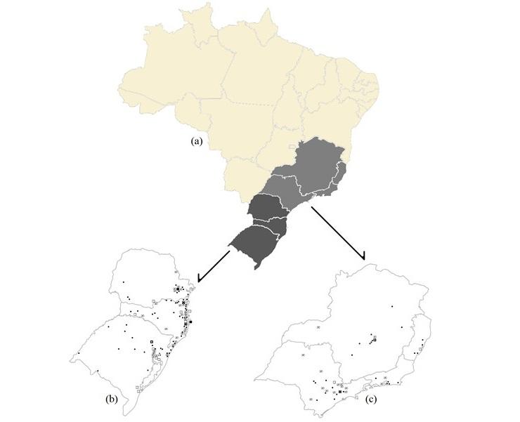 Despite its presence in Brazil's five macro-regions (Appendix 1), the sector was more intense in the Southeastern and Southern states (Figures 2a, 2b, 3a) and was clearly distributed through multiple agglutinations in cities close to each other (Figure 3b, 3c). As a rule, a hub's presence was linked to the existence of other cities with companies in its surroundings.