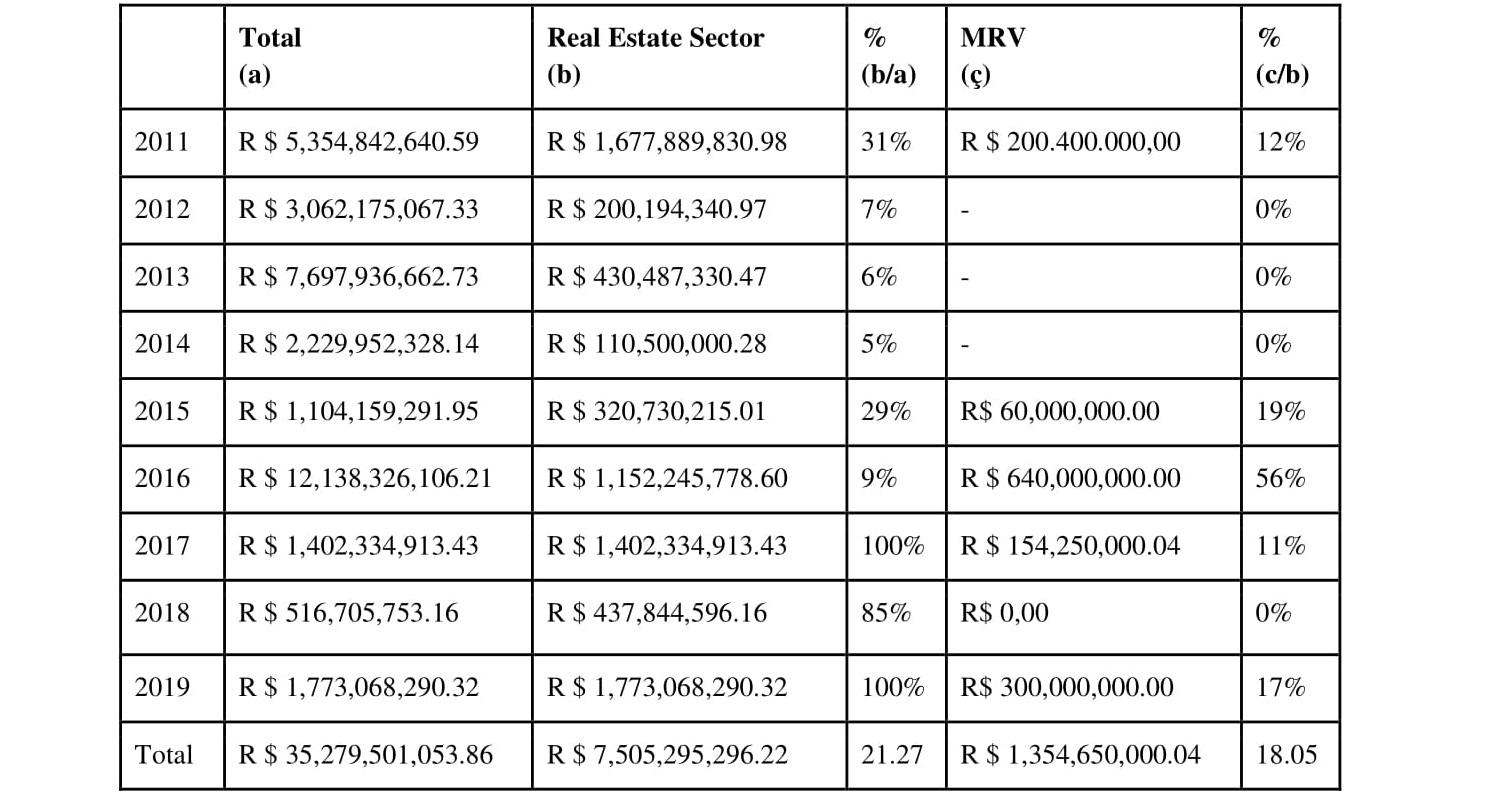 Given the purposes of this article, centered on real estate securitization in Brazil, it is noteworthy that between 2011 and 2019, MRV originated eleven structured RERC operations through real estate financing aimed at the production of residential projects. Most of these projects targeted the middle and low-income segments, most of which were constructed under the PMCMV brand.