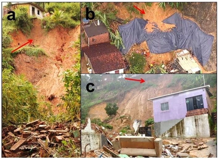 Muitos autores (e.g. ALHEIROS, 1998; PFALTZGRAFF, 2007; BERLIM; OLIVEIRA e CARVALHO, 2015) atribuem a gênese dos deslizamentos em Pernambuco a uma suscetibilidade natural associada à forma de ocupação deficitária, principalmente na Formação Barreiras presente na RMR. Berlim, Oliveira e Carvalho (2015) destacam ainda as intervenções antrópicas incompatíveis com a dinâmica das encostas, como cortes, drenagem difusa de efluentes sem drenagem sanitária, cultivo de bananeiras e outras espécies vegetais que acumulam água, deposição de resíduos sólidos e ausência de canais para escoamento de águas pluviais, ou seja, diversas condições que aumentam o risco de deslizamentos.