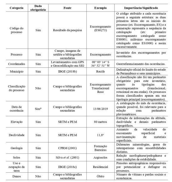 Segundo Guzzetti e colaboradores (2000), invenção seguirão procedimentos internacionais em sua elaboração. Esses autores dividem esses tipos de mapeamento em duas categorias: (i) arquitetônico e (ii) geomorfológico. A primeira refere-se aos métodos de coleta de dados de arquivos e registros de outras fontes, como bases de dados nacionais ou globais, jornais e revistas, relatórios técnicos e produções acadêmicas. A segunda está associada à coleta de dados primários e pode ser produzida para um único evento desencadeador (p. ; PEREIRA et al., 2014; KIRSCHBAUM;STANLEY e ZHOU, 2015; CALVELLO e PECORARO, 2018).