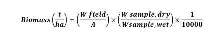 No caso de ervas, gramíneas e serapilheiras e plantas de pequeno porte (DAP <5cm), calculou-se uma quantidade de biomassa por unidade de área utilizando a seguinte fórmula: