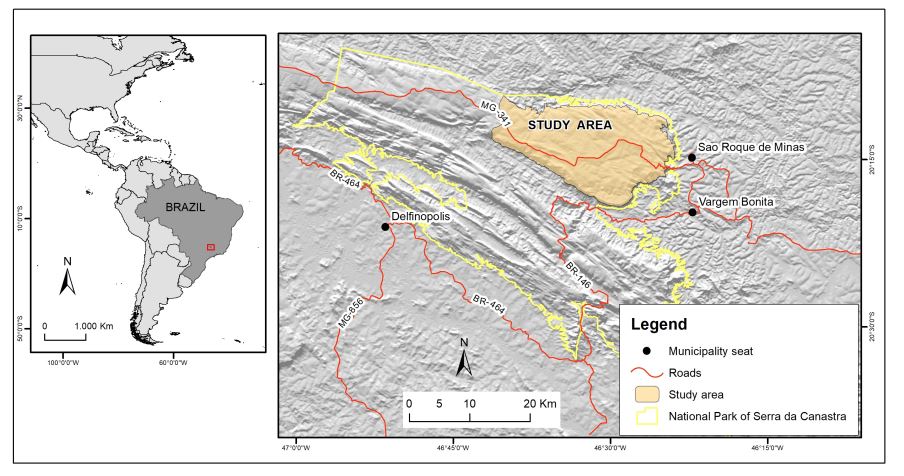 Estudamos uma área rural que já foi um pasto natural e foi transformada em Parque Nacional em 1972. O atendimento humano atual se limita às áreas de visitação do Parque Serra da Canastra. Atualmente, há pequenas áreas de atividade antrópica às margens de estradas abandonadas e fazendas antigas.
