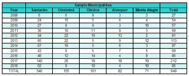 For the study, all cases notified in the five municipalities selected from 2008 to 2018 were included, defining a sample of 949 eligible cases, that is, of pregnant women who were diagnosed with syphilis in health centers during prenatal care. Therefore, no type of interview and / or questionnaires were applied to patients and data were extracted only from the national epidemiological surveillance platform.