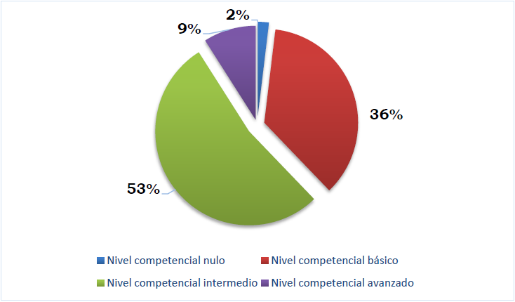En referencia al análisis global de la dimensión de la competencia, entendiendo esta como el conjunto de todas las habilidades para el acceso, evaluación y almacenamiento de la información, se determina que el nivel es mayormente intermedio, contrastando con un alto índice que presupone un nivel básico, con un bajo índice de futuros docentes que reconocen un alto nivel. El bajo nivel, en algunas ocasiones, puede deberse a lo relatado en estudios que afirman que los planes formativos universitarios presentan determinadas carencias en lo que se refiere a la formación digital de los futuros docentes (Leiva y Moreno, 2015), lo cual debe ser mejorado en generaciones venideras de futuros maestros (Silva, Lázaro, Miranda y Canales, 2018).