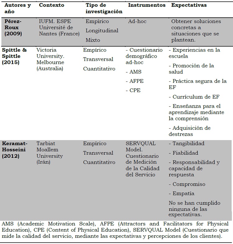 En lo que respecta a la revisión sistemática de los 3 artículos seleccionados, solo tres mencionan una investigación de las expectativas del alumnado sobre asignaturas de EF (Tabla 1).