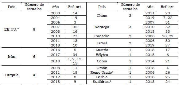 Estados Unidos se muestra como el país con mayor número de contribuciones académicas. De igual manera, países como Irán [1, 2, 5, 12, 15, 34], Turquía [8, 9, 11, 18] y Noruega [31, 32, 33] muestran un interés sólido y constante en el estudio de las creencias de eficacia del profesorado. En concreto, los investigadores noruegos Skaalvik y Skaalvik se presentan como los autores con mayor impacto en la comunidad científica por el alto número de citas en sus estudios [31, 32]. No obstante, el artículo más citado es el de los autores Goddard et al. (2000) [14], debido probablemente a la fama y uso del instrumento que ahí se presenta.