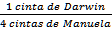 de la cinta azul”; “1 pedacito de la cinta de manuela es