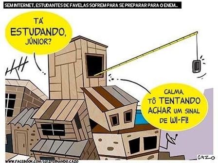 “Às vezes, a internet da associação de moradores falha e perco a continuidade das leituras. Às vezes, a velocidade não é suficiente para assistir a uma videoaula. Sigo estudando por materiais aleatórios, mas com dificuldades. Tenho tentado não parar, mas às vezes bate a desmotivação. Não ter internet nesse momento em que não podemos sair de casa é um obstáculo enorme”. Luiz Menezes, vestibulando morador da Maré (Rio de Janeiro)[20].