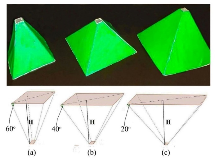 Los estudiantes predijeron que la tolva que se vaciaba con mayor rapidez era la tolva cuyas paredes tenían la mayor inclinación, figura 4(a). Sin embargo, al experimentar con las tres tolvas y al medir los tiempos de vaciado, los estudiantes determinaron que la tolva que se vaciaba con mayor rapidez se trataba de la tolva de la figura 4(b), se vaciaba en un tiempo promedio 8.67 segundos.