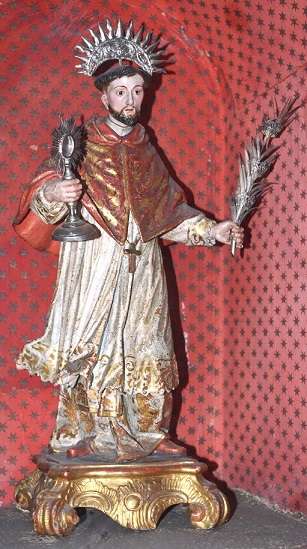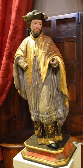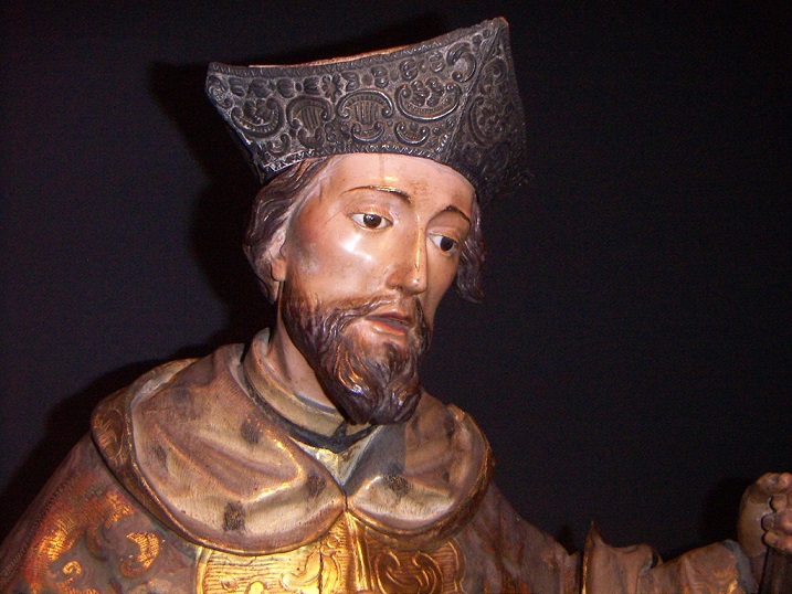En otros casos la documentación no deja lugar a la duda, pues la correspondencia dada a conocer por último demuestra que gran parte de las obras de Hita y Castillo que llegaron a La Palma en tiempos de Felipe Massieu fueron requeridas al tratante Bernardo García de Azcárate, quien se convirtió en hombre de confianza para cualquier asunto que afectara a los intereses familiares en Andalucía. Sabemos que atendió el encargo de pequeñas esculturas para su casa y la de otros parientes en al menos tres remesas documentadas en 1758-1759, 1760 y 1768[74]. Además, se ha constatado su tutela en la ejecución de las tallas de San Miguel y San Antonio que el mismo Massieu obsequió en 1772-1773 a la parroquia de Puntallana, así como de la Virgen del Carmen que Francisco Estanislao de Lugo y Viña, cuñado suyo, entronizó en una ermita de su propiedad que había construido en Barlovento[75]. Identificamos ahora el «San Ramón de madera pequeñito [y] estofado» que el mismo Azcárate remitió a Santiago Clemente en julio de 1763 con la efigie de dicho santo existente en la iglesia franciscana de Santa Cruz de Tenerife, cuya relación con el arte de Hita ya se había puesto de relieve[76] (Fig. 6).