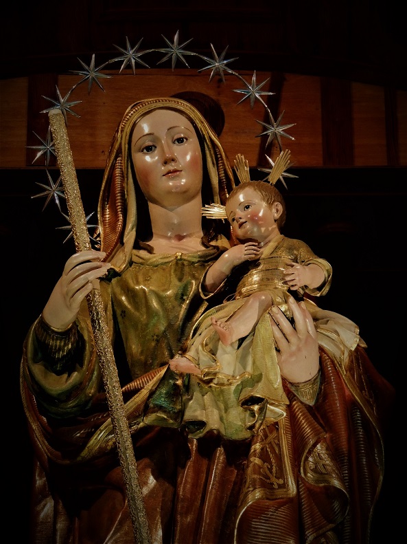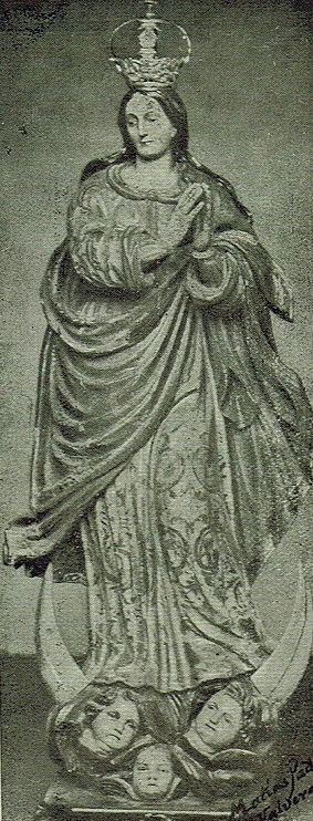 Pese a que no fue lo habitual, las piezas importadas a finales del Antiguo Régimen divulgaron temas que no contaban con una figuración correcta en clave iconográfica. Está documentado que sucedió así con la Virgen de la Asunción de San Sebastián de La Gomera[171] (Fig. 19) y es probable que ocurriera lo mismo con la Inmaculada de Valverde[172] (Fig. 24) o con la Candelaria de Ingenio[173] (Fig. 15). Más atípica resulta la introducción de advocaciones o títulos marianos, aunque hay algún ejemplo que se debe aludir en relación con los envíos andaluces que estudiamos. A esta dinámica corresponde la Virgen de Montenegro (c. 1770) que Blas Molner esculpió a instancias del escribano José de Montenegro para convertirse en titular de la ermita que había erigido junto a la hacienda familiar de El Ancón, en un paraje costero de La Orotava[174] (Fig. 13).