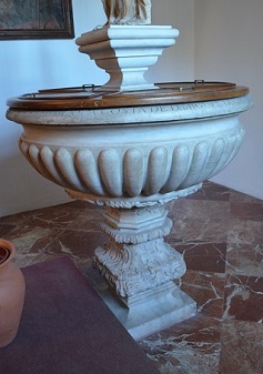 De acuerdo a este panorama, la escultura contratada en Sevilla dejó de tener un protagonismo hegemónico para el comitente isleño y pasaría a convertirse en una alternativa más, no en su única opción a la hora de importar obras devocionales. Tal fue así que, incluso, no se contemplaba ya como la primera tentativa o posibilidad viable de encargo. Varios documentos insisten en esa idea, pero resulta ejemplarizante que, cuando el párroco de Valverde Francisco Frías contrató una talla de la Inmaculada en 1788, la primera aspiración fuese escribir a Génova. Luego, ante la cortedad de los fondos y los elevados gastos del porte, sus intermediarios recurrieron a Sevilla porque de allí «podría venir (…) cosa de gusto»[42]. Las obras ligures eran las más admiradas y cotizadas, ya que, como informaban agentes de esa época, «se fabrican en Italia con primor» y al tiempo de la recepción deslumbraban por «su acabado más perfecto». Basta contemplar la Virgen del Carmen del convento franciscano de Teguise, ya desaparecida y llegada a Lanzarote en torno a 1773, para percatarnos de que sus cualidades plásticas eran superiores a cuanto pudiera contratarse en Sevilla durante esas fechas (Fig. 2). Algo semejante sucedería en lo relativo a piezas o enseres de mármol, puesto que la mala reputación que ganó el labrante Salvador Alcaraz y Valdés tras enviar una pila bautismal a la ciudad de La Laguna en 1759 motivaría que encargos posteriores fueran pedidos a Génova y no a Andalucía (Fig. 4). Concluye así una dinámica que permitió la compra de piezas interesantes en el pasado, al existir pilas de origen sevillano y gaditano que arribaron a Canarias antes de que mediara el siglo[43].