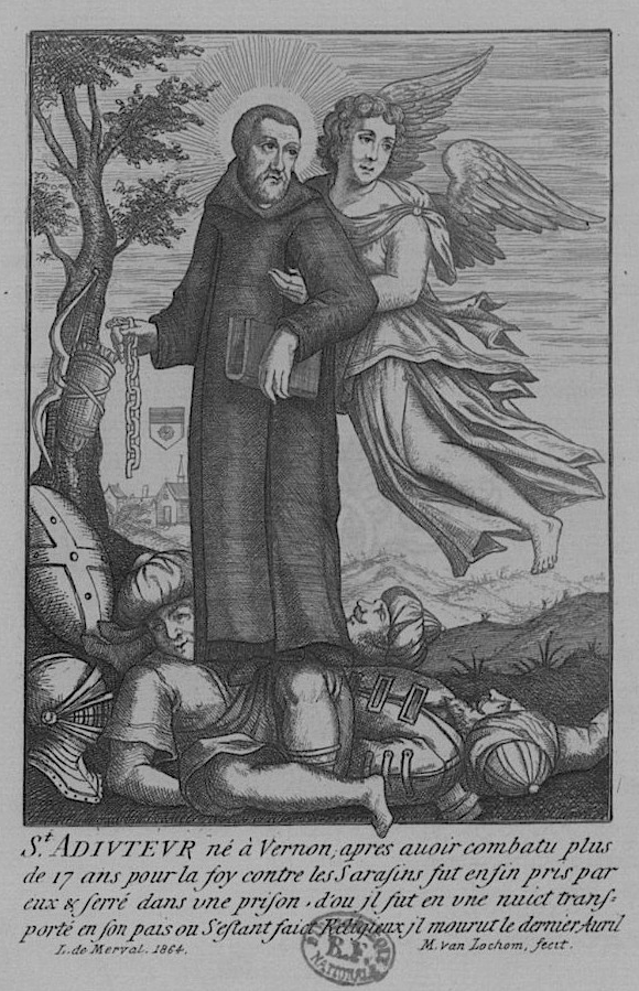Como vemos, la hagiografía desdibuja al normando cruzado Adjutor, del que nos queda solo algunos datos concretos gracias a la vida que escribió el arzobispo de Rouen, Hugo de Amiens, a la muerte del santo en el siglo XII y, más tardíamente, en el siglo XVII, Jean Theroude, sacerdote de Vernon. Esta última obra ya nos muestra todos los hechos prodigiosos que se fueron atribuyendo al santo cruzado y monje con el devenir de los años.