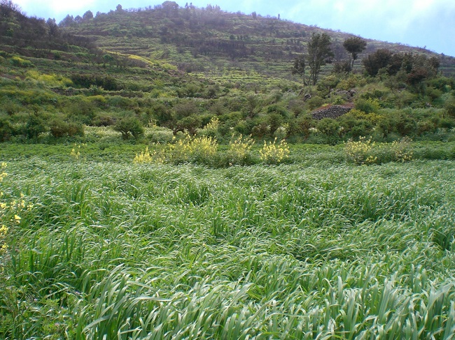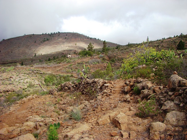 La extinción de los ganados salvajes en Isora y Adeje y la transformación de parte de las tierras del término en partidos de ganado manso y cereal fue un proceso más paulatino. Nos consta que en el término de Chindia y Montiel ya se habían puesto en cultivo algunas tierras en 1597, cuando las compró Isabel Jorva-Calderón, pues en el acta de toma de posesión se señala que dentro de los linderos de la propiedad habían “tierras hechas y por hacer”. Las tierras hechas se encontraban por debajo el camino que llevaba de Tejina a Adeje y corresponden más o menos con el topónimo actual “cercado de Montiel”. Los pastos de la zona alta del término quedaron separados del espacio cultivado mediante una pared de piedra que impedía que el ganado salvaje bajase a los sembrados, pero en 1667 los propietarios ordenaron realizar una nueva pared por encima del “bardo viejo” para extender las tierras cultivadas, tal como se indica en una querella muy posterior[75].