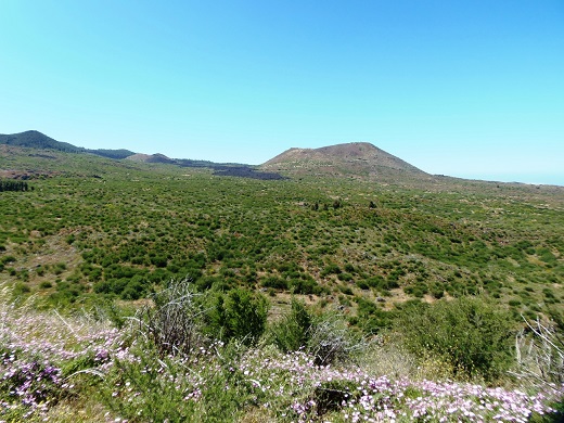 Algo más al sur, en los arenales de la montaña de Bilma se había formado el partido de los Hoyo. Como hemos visto, desde 1665 los señores de la Villa de Santiago habían comenzado a asentar colonos por encima de los mojones concejiles del “Saltadero [de la Cueva de la Gallega]” y “pino de Las Colmenas”. En el reconocimiento de 1772 se señalaba que el partido de Fernando del Hoyo estaba atendido por cuatro medianeros y ocupaba una superficie de 37 hectáreas de tierras de cereal. Nuestros reconocimientos sobre el terreno no son concluyentes acerca de la posible ubicación de las casas y corrales del partido de los Hoyo, pero en medio de los pastos de Bilma se encuentra el topónimo “lomo de las casas viejas” con vestigios de construcciones, que concuerda aproximadamente con las vagas indicaciones que aporta el expediente de 1772. No olvidemos además que esta área quedó afectada por las emisiones de ceniza de la erupción del Chinyero (1909/1910) que se extendieron precisamente sobre esa zona (véase fig. 3).