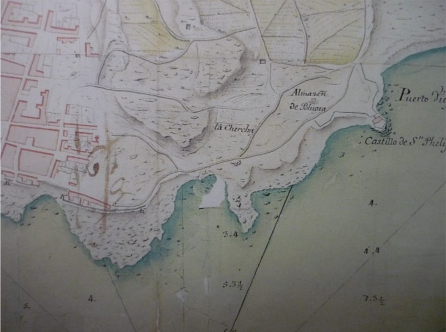 Con la denominación de La Chercha aparece representado por primera vez en el plano levantado por el ingeniero militar Antonio Riviere en 1741, con la ubicación, la extensión y la forma rectangular que volveremos a encontrar en los planos del siglo XIX[42].