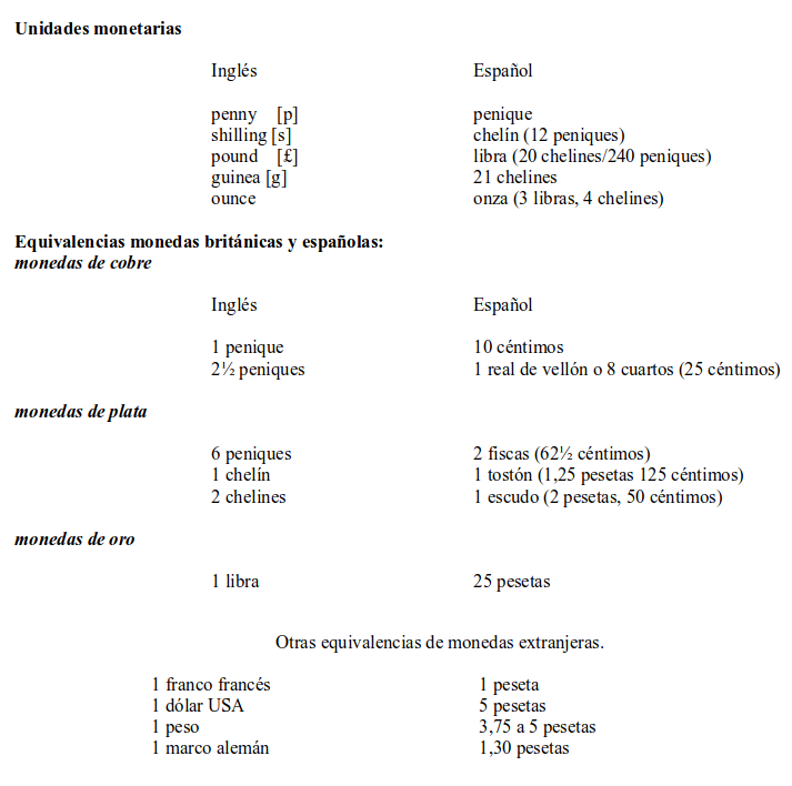 Comenta Harold Lee, viajero que visitó las islas de Gran Canaria y Tenerife en 1887, que las monedas de oro en circulación eran de cinco, diez, veinte, veinticinco, cuarenta y cincuenta pesetas, e igual equivalencia respectivamente eran las monedas de cuatro, ocho, dieciséis, treinta y dos y sesenta y cuatro chelines, además de una libra esterlina[4]. El viajero insinúa que no era necesario la obtención monedas españolas y portuguesas antes de salir de Gran Bretaña. Las monedas de oro inglesas eran aceptadas en cualquier lugar de las islas y muy poca gente rechazaba las monedas de plata. Los hombres de los botes que transportaban desde el barco al muelle y viceversa aceptaban con mucho gusto las de plata[5].