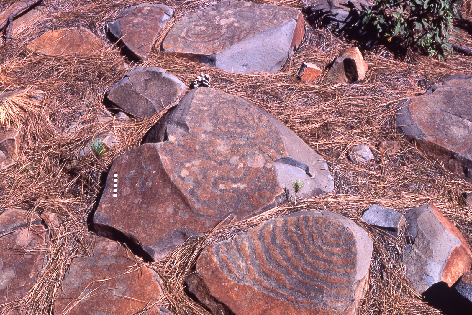 La estación de grabados rupestres del lomo de Tamarahoya (pico Bejenao. El Paso) fue descubierta por el Dr. Mauro Hernández Pérez durante las prospecciones realizadas para preparar su tesis doctoral a mediados de la década de los 70 del siglo XX. Posteriormente, entre 1986 y 1991 realizamos un estudio exhaustivo que consistió, básicamente, en el inventario detallado de cada uno de los paneles que forman parte del conjunto[5].