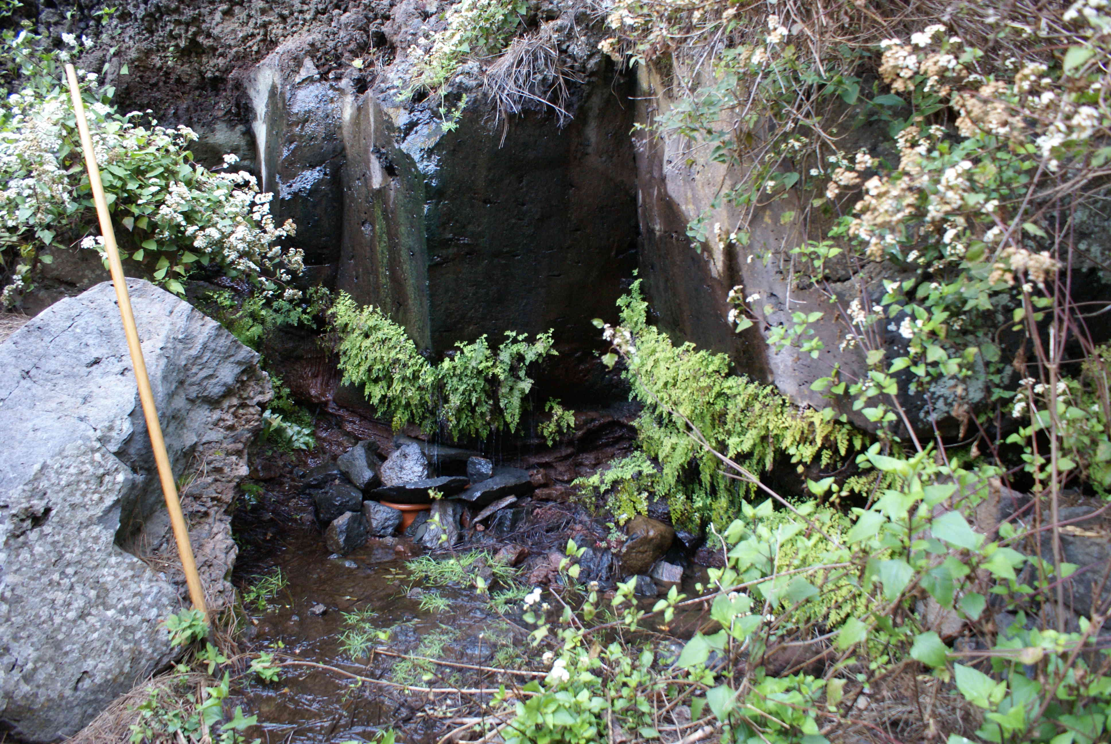 El afloramiento de agua principal coincide con una gran capa de almagre rojo, escurriéndose el agua entre esta y los bloques de basalto que están encima. No obstante, cuando llueve con intensidad el agua se filtra en abundantes chorros a través de la propia roca. Se trata del punto de agua más importante de todo el pico Bejenao. Sin embargo, su caudal merma considerablemente en la época estivale incluso se llegó a secar completamente en la sequía del año 2012.