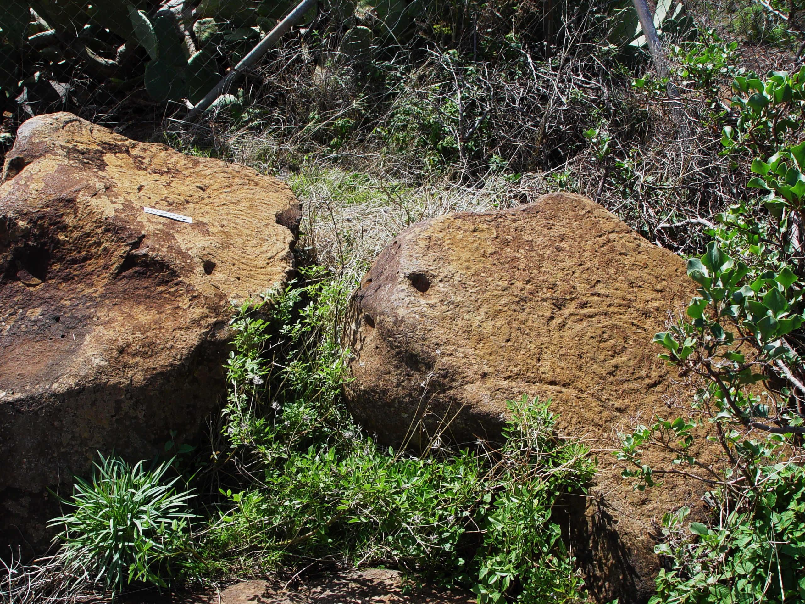 Estos petroglifos destacan por varias circunstancias: 1) Uno de los motivos se ha identificado con la representación esquemática de un naviforme fenicio cuando, en nuestra opinión, se trata de un reticulado un tanto irregular y 2) El panel más grande combina la presencia de petroglifos (espirales y meandriformes) con un buen número de cazoletas de diferentes tamaños y formas, con predominio de las circulares, excavadas en el basalto. Ambas circunstancias son muy poco frecuentes en la etapa prehispánica palmera, lo cual lo convierte en un panel casi único.
