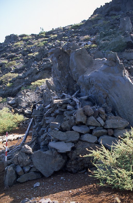 El asentamiento pastoril, que ya existió en la etapa prehispánica, tal y como indican los abundantes fragmentos de cerámica y piezas líticas que tachonan el suelo, continuó siendo ocupado por los cabreros históricos hasta inicios de la década de los 90 del siglo XX. Está formado por varios abrigos pastoriles levantados con muros de piedra seca y techumbre vegetal (troncos y ramajes de pino y cedro), un pequeño goro para proteger los cabritos de los cuervos y un encerradero de ganado[26]. Este conjunto pastoril fue rehabilitado gracias a un proyecto de rehabilitación entre ADER La Palma y la Consejería de Cultura, Educación y Patrimonio Histórico del Cabildo Insular de La Palma en el año 2004[27]. Por tanto, constituye un magnífico ejemplo de este tipo de conjuntos etnográficos que nos dan una imagen muy ilustrativa sobre la forma en que los pastores explotaban y aprovechaban los recursos naturales que el medio natural les ofrecía.