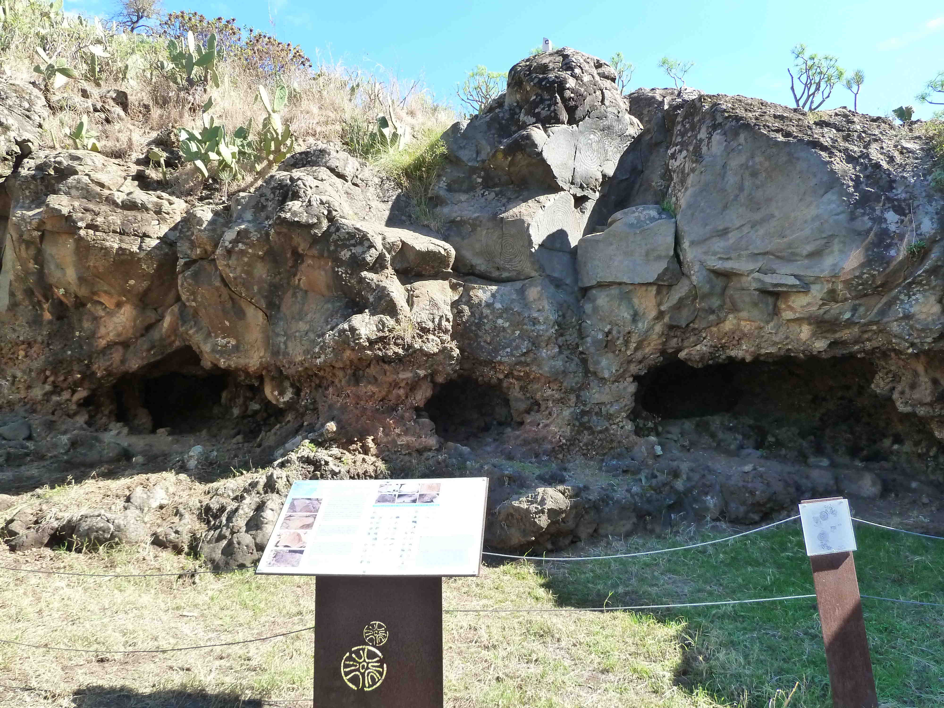 En la base del caboco que sirve de soporte a los petroglifos del cementerio se abren cuatro pequeñas cavidades naturales en las que se han encontrado algunos, aunque escasos restos, arqueológicos superficiales, lo cual indica su explotación por parte de los benahoaritas. Sin embargo, no parece que fuesen ocupadas de forma permanente debido a sus reducidas dimensiones, precarias condiciones de habitabilidad y, sobre todo, por la peligrosidad que representaban las avenidas de agua repentinas del barranco[9].