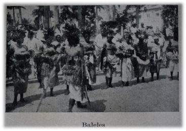 Fotografía sin firma incluida por Miranda en sus Cartas en la que puede apreciarse un detalle de una de las danzas tradicionales de Guinea Ecuatorial. Acerca de ella, el autor reflexiona advirtiendo el escaso interés que estas manifestaciones culturales nativas despiertan en los colonizadores, que «contemplan los “baleles”» portando una «sonrisa […] incomprensiva» que les impide conocer «los entresijos del alma negra» a través de este y otros ritos sociales, como sus «ceremonias fúnebres, relaciones familiares, instituciones políticas», etc. En definitiva, «todo un mundo junto al que hemos convivido largamente» sin que «hubiera merecido hasta ahora algo más que sonrisas irónicas»[105].