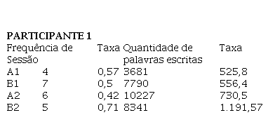 Tabela 1. Frequência de sessão e quantidade de palavras escritas