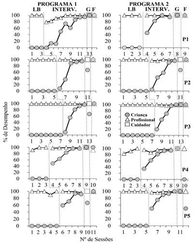 Esta fase (intervenção) era finalizada com cada participante quando ele atingia o critério de desempenho estabelecido: precisão de desempenho de 90% ou mais de respostas corretas independentes, em duas sessões consecutivas de treino.