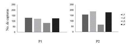 Finalmente, en términos de logro, el número total de capturas varió entre participantes. Mientras la P1 capturó 460 insectos (460 puntos), la P2 logró capturar 592 (592 puntos).