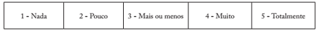 Responda em cada item, numa escala de 1 a 5: quanto você se identifica com as afirmações propostas.