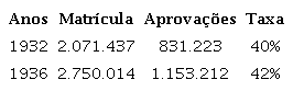 Ao lado da efetiva ampliação do acesso à escola observado após 1930, a possibilidade de contar com maior quantidade de dados estatísticos reputados como de boa qualidade permite ver a reprovação, a repetência e a evasão escolar como fenômenos estatisticamente expressivos. A própria publicação sistemática dos números, por si só, permitia ver as distorções de fluxo, o que talvez já existisse há muito tempo, mas sem a visibilidade permitida pelos números. O aumento dos números absolutos de matrícula também vai assumir, pela simples grandeza das cifras, uma feição espantosa.