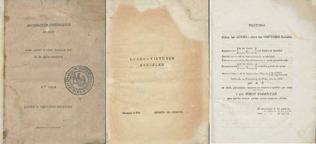 En 1833, el sabio itinerante llegó a Concepción, en Chile, invitado por José Antonio Alemparte, intendente de la ciudad, quien le pidió que se hiciese cargo de su Instituto Literario. En esa época, Rodríguez hizo un nuevo intento para editar su obra: el libro publicado en Concepción lleva el título de Luces y virtudes sociales, y desarrolla la parte del tratado que estaría dedicado a la teoría de la educación popular.