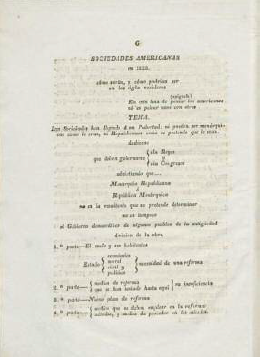 La república tampoco es posible en América porque no hay “pueblo” auténtico. La soberanía del pueblo pobre ha sido usurpada por doctores, literatos y escritores, gente que asumido para sí misma el derecho a hablar en nombre del pueblo. Por eso el programa de Lima dice que las sociedades americanas deben gobernarse “sin Congresos”. Es necesario que el pueblo pobre recupere la capacidad soberana. Como veremos en la parte final del programa de Lima, Sociedades americanas en 1828 se ha impuesto como objeto explicar cómo puede recuperarse esa soberanía usurpada25.