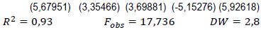 The model was built using the application software STATISTICA 13.0 based on the data of the Federal Service of State Statistics (2017b) using the least-squares method (LSM).